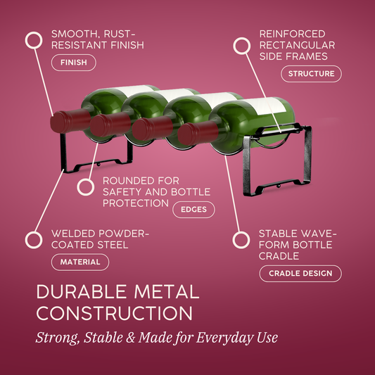 Straame 3 Tier Metal Wine Rack – Stackable Bottle Rack for Wine Storage – Wine Racks Free Standing Organiser for Countertop, Shelf or Cupboard – Modular Wire Rack Holder – Modern Design (Black)