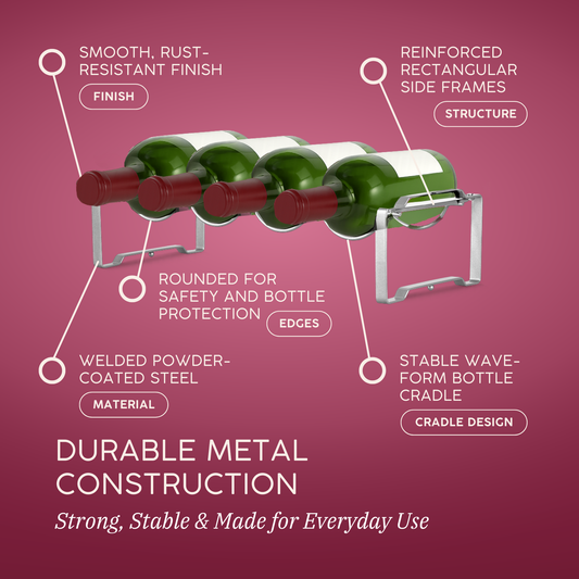 Straame 3 Tier Metal Wine Rack – Stackable Bottle Rack for Wine Storage – Wine Racks Free Standing Organiser for Countertop, Shelf or Cupboard – Modular Wire Rack Holder – Modern Design (Silver)