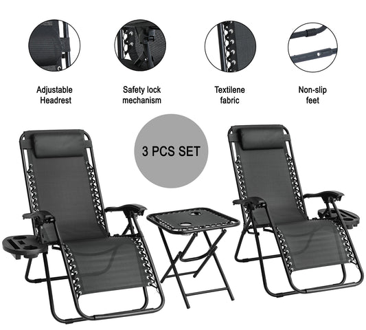 Straame 3PC Reclining Lounger Set, Set of 2 Zero Gravity Chairs with Table | Heavy Duty Textoline
